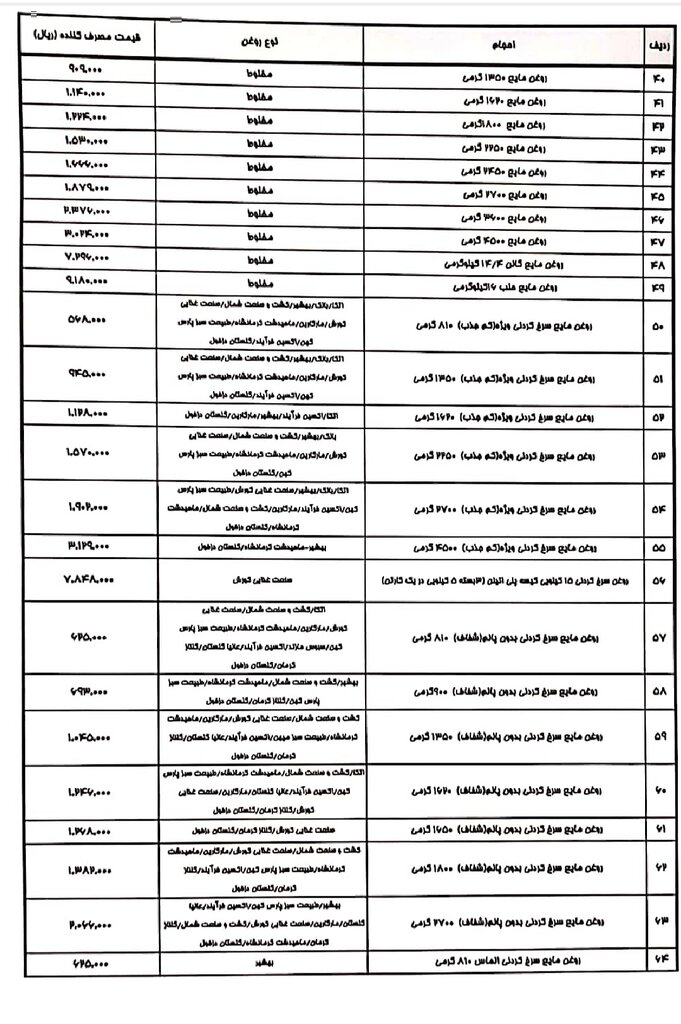 بنا بر این گزارش قیمت روغن خانوار ۱۰ درصد و قیمت روغن صنف و صنعت ۱۵ درصد کاهش داشته است.