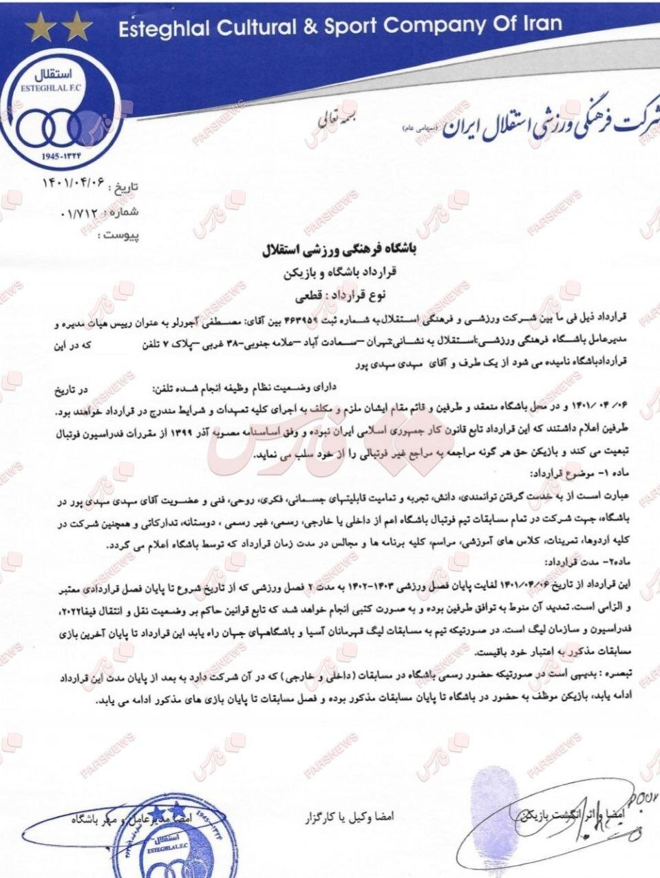 رونمایی از قرارداد هافبک استقلال: ۳۶ میلیارد + آپشن‌های جذاب