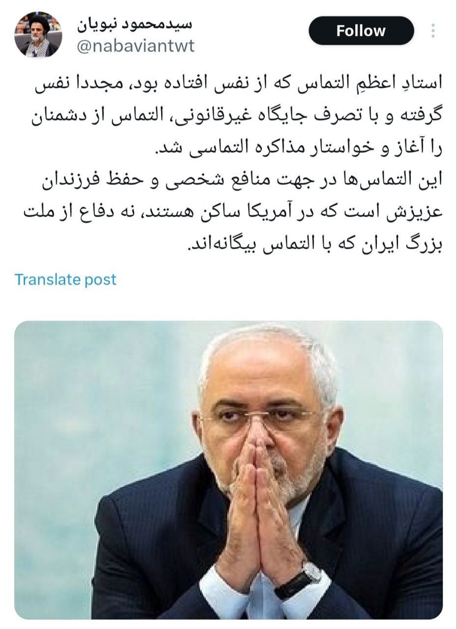 به گزارش خبرداغ به نقل از خبرآنلاین؛ سید محمود نبویان نماینده تهران در مجلس شورای اسلامی در شبکه اجتماعی ایکس در واکنش به مقاله محمدجواد ظریف در نشریه فارن افرز نوشت: